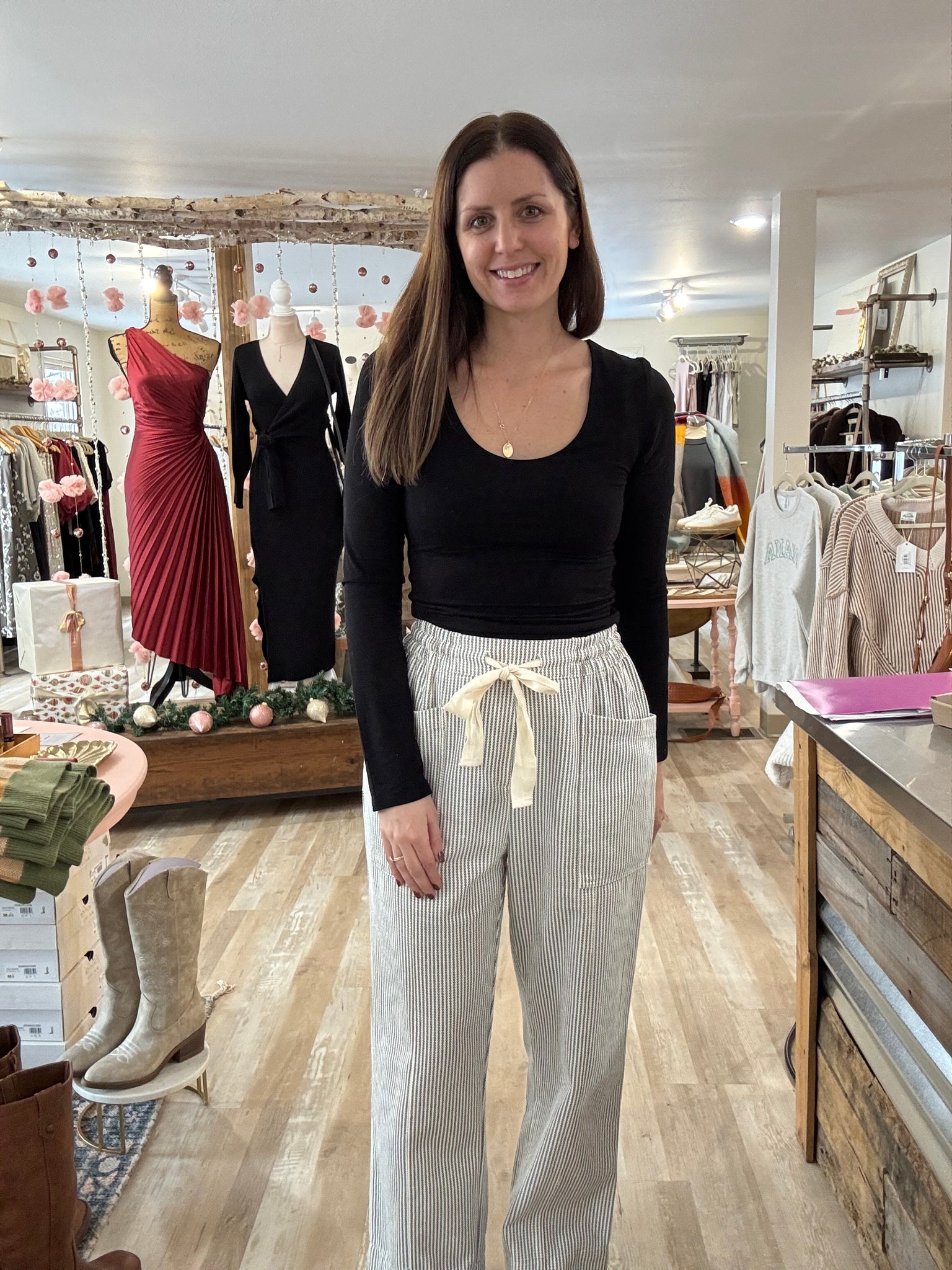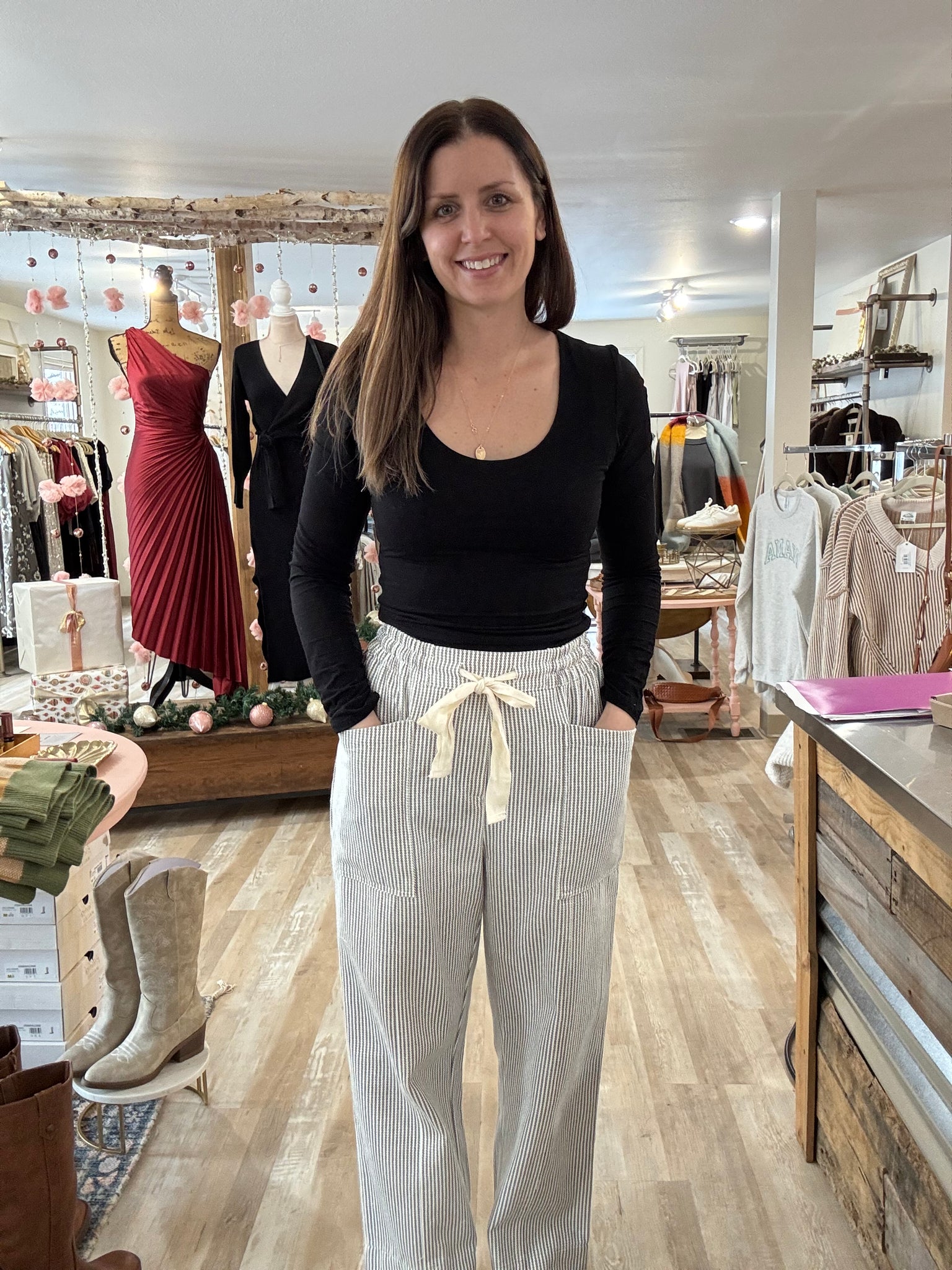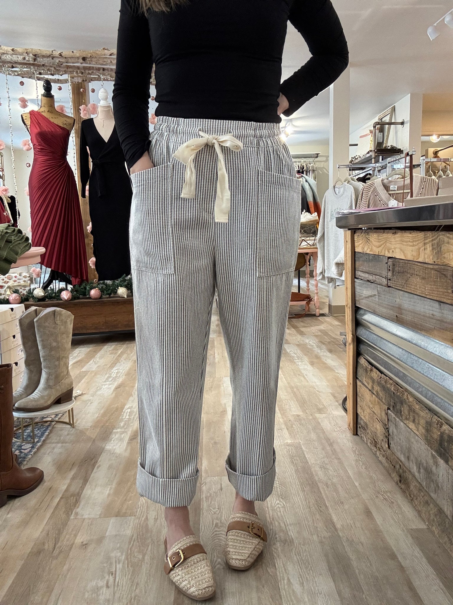 white+grey stripe relaxed pants