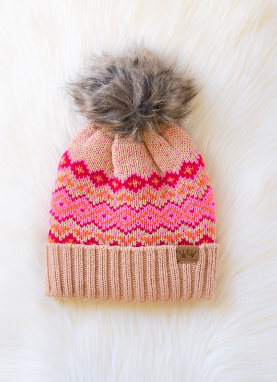 blush, pink + orange pom beanie