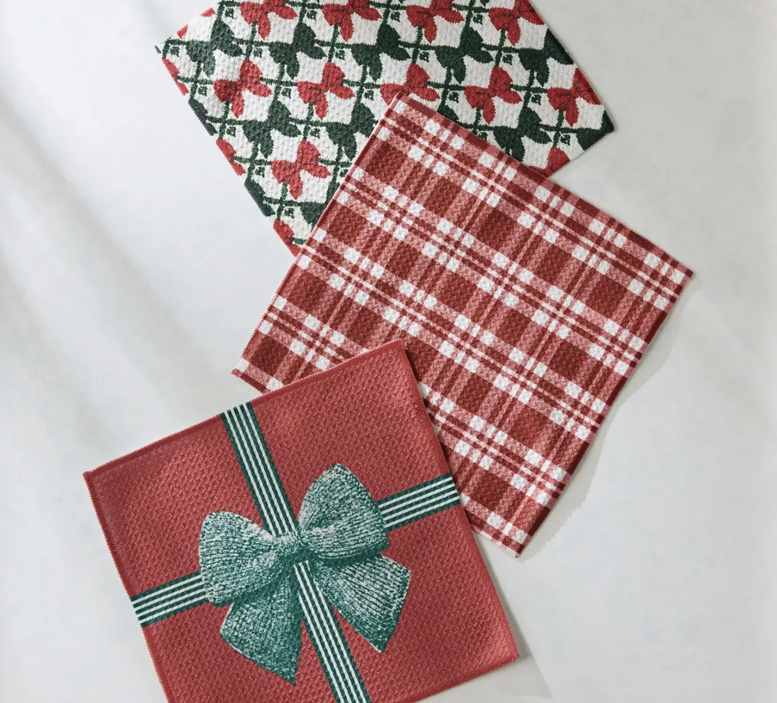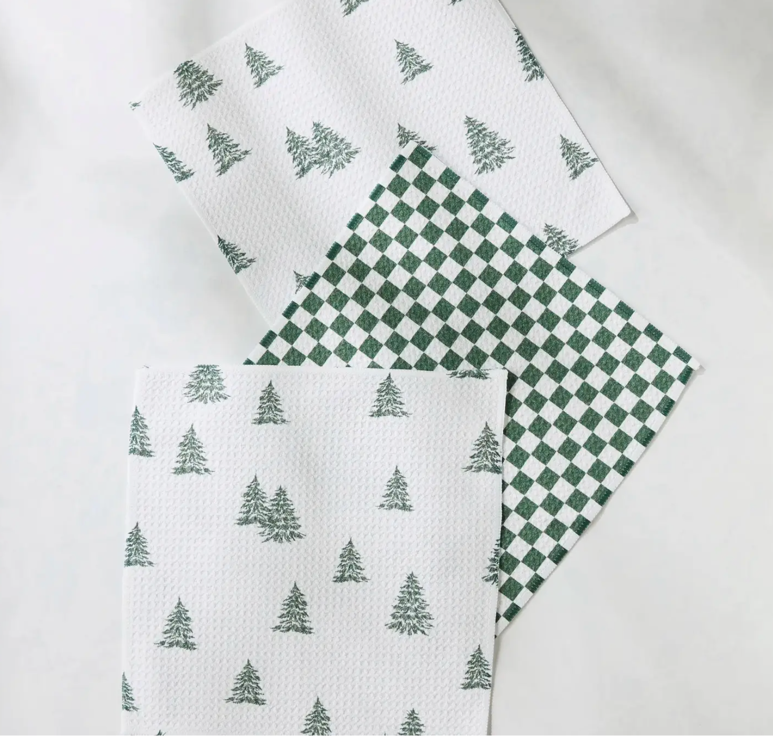 Dishcloth Set - 3 pack | 10" x 10" | made from recycled polyester | Single-sided print | Hang loop | Waffle weave construction | Quick-drying | Superior cleaning | Next-level absorbency.