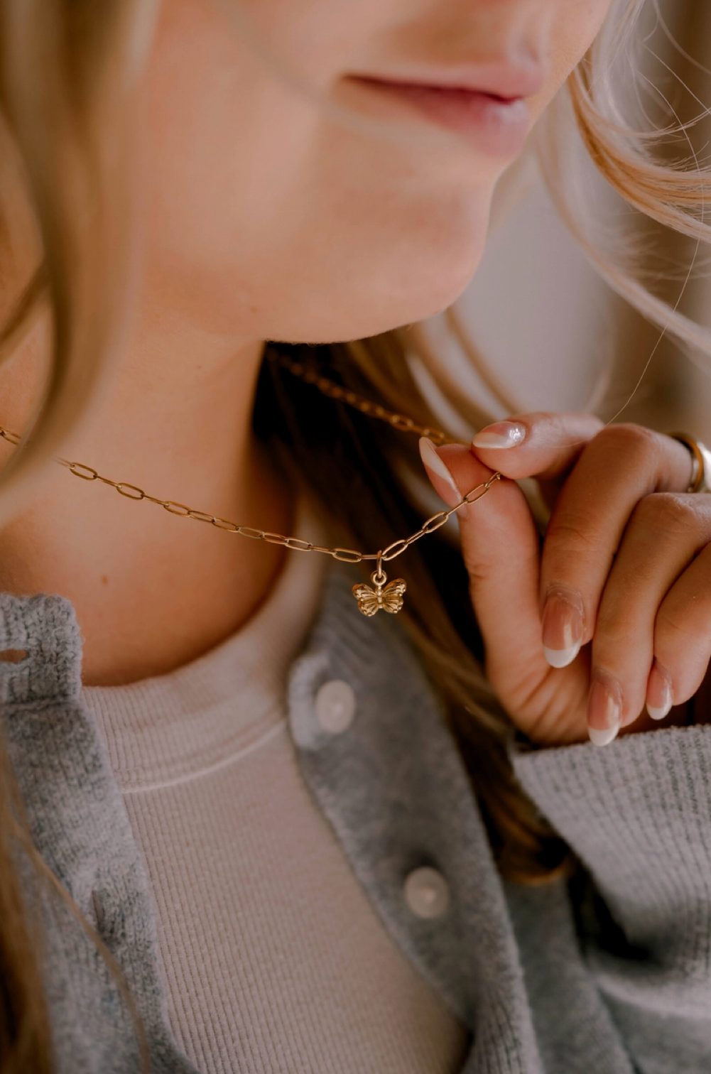 Details: Butterfly Charm on a 16-18" mini paperclip chain