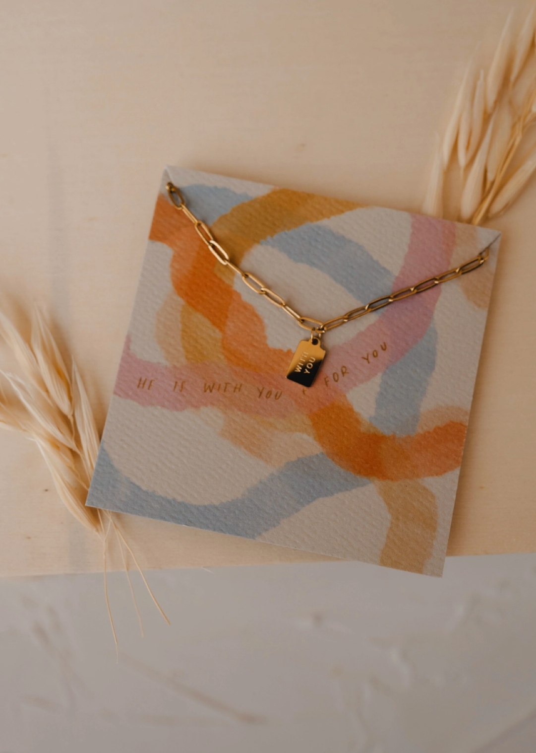 Displayed on a textured card featuring beautiful artwork by Lauren Ferguson of The Golden Designs.