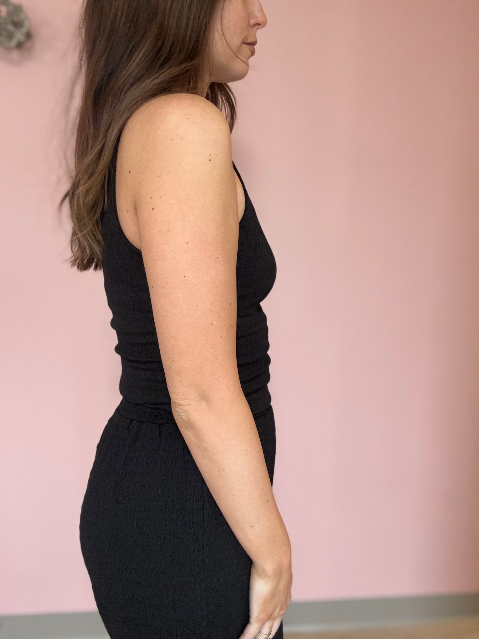 This is a closet staple. It's great quality + can be styled numerous ways! We especially love it styled with the matching pants because it looks like a jumpsuit!