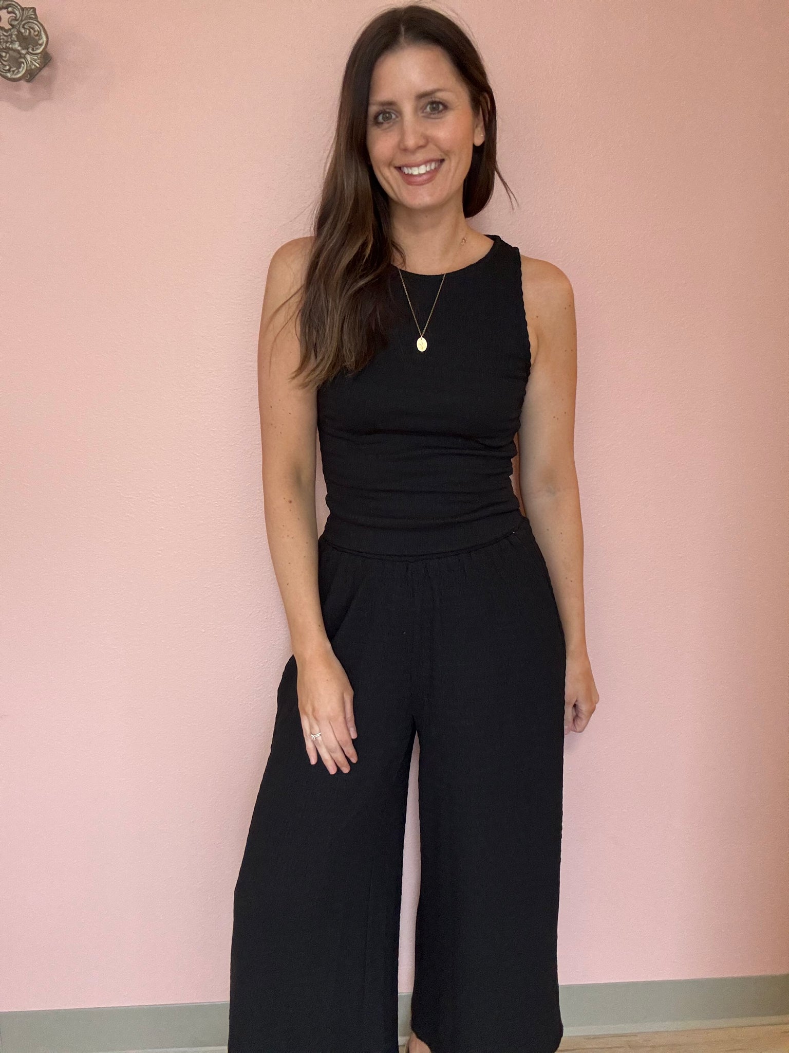 This is a closet staple. It's great quality + can be styled numerous ways! We especially love it styled with the matching tank because it looks like a jumpsuit! These pants will be your new favorites. They are SO COMFY!
