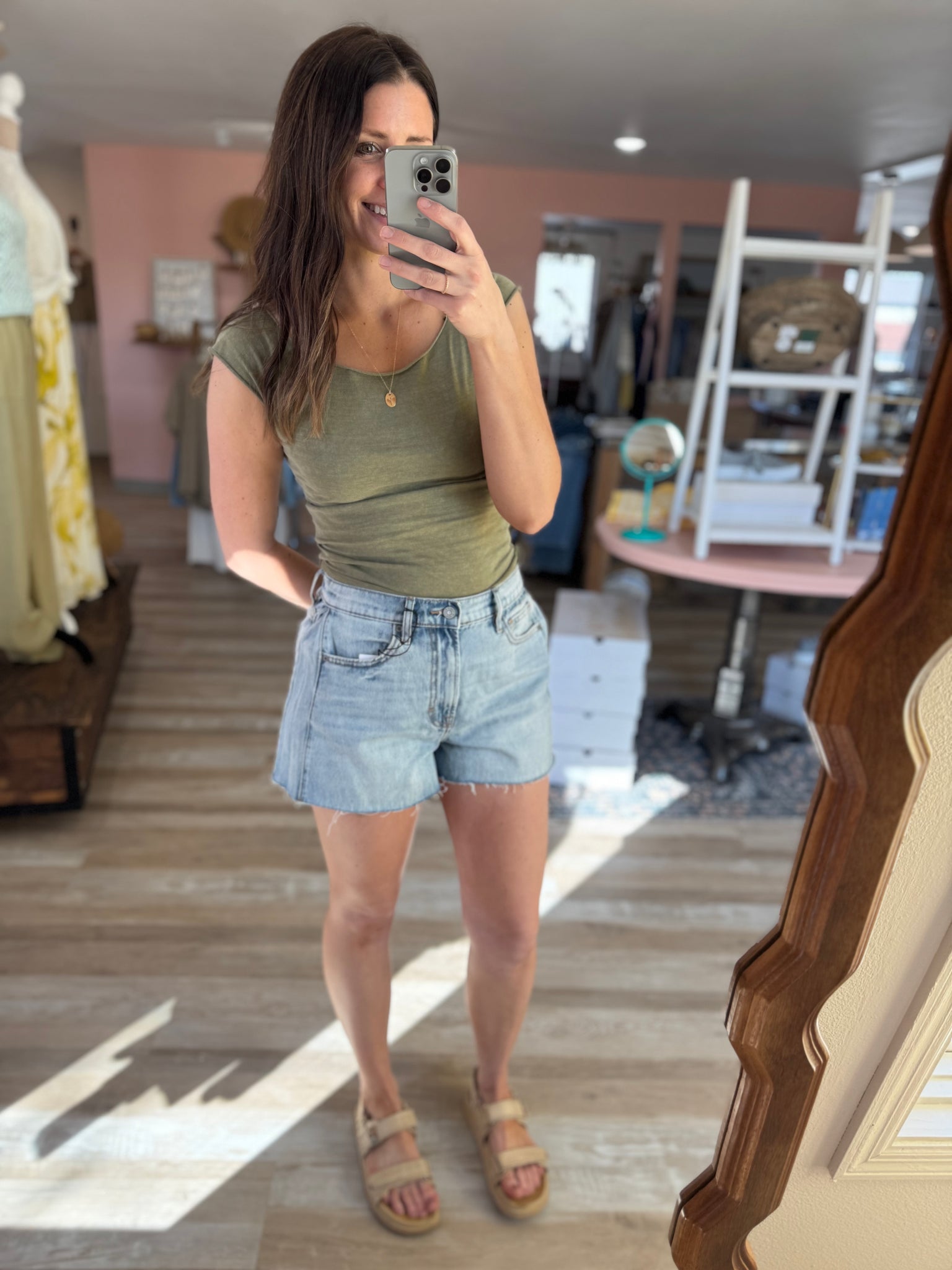 - Kate is 5'5 wearing a small (usually a medium in bottom, 7 in jeans) sized down in these because the hips have more room in them with the “a-line”
