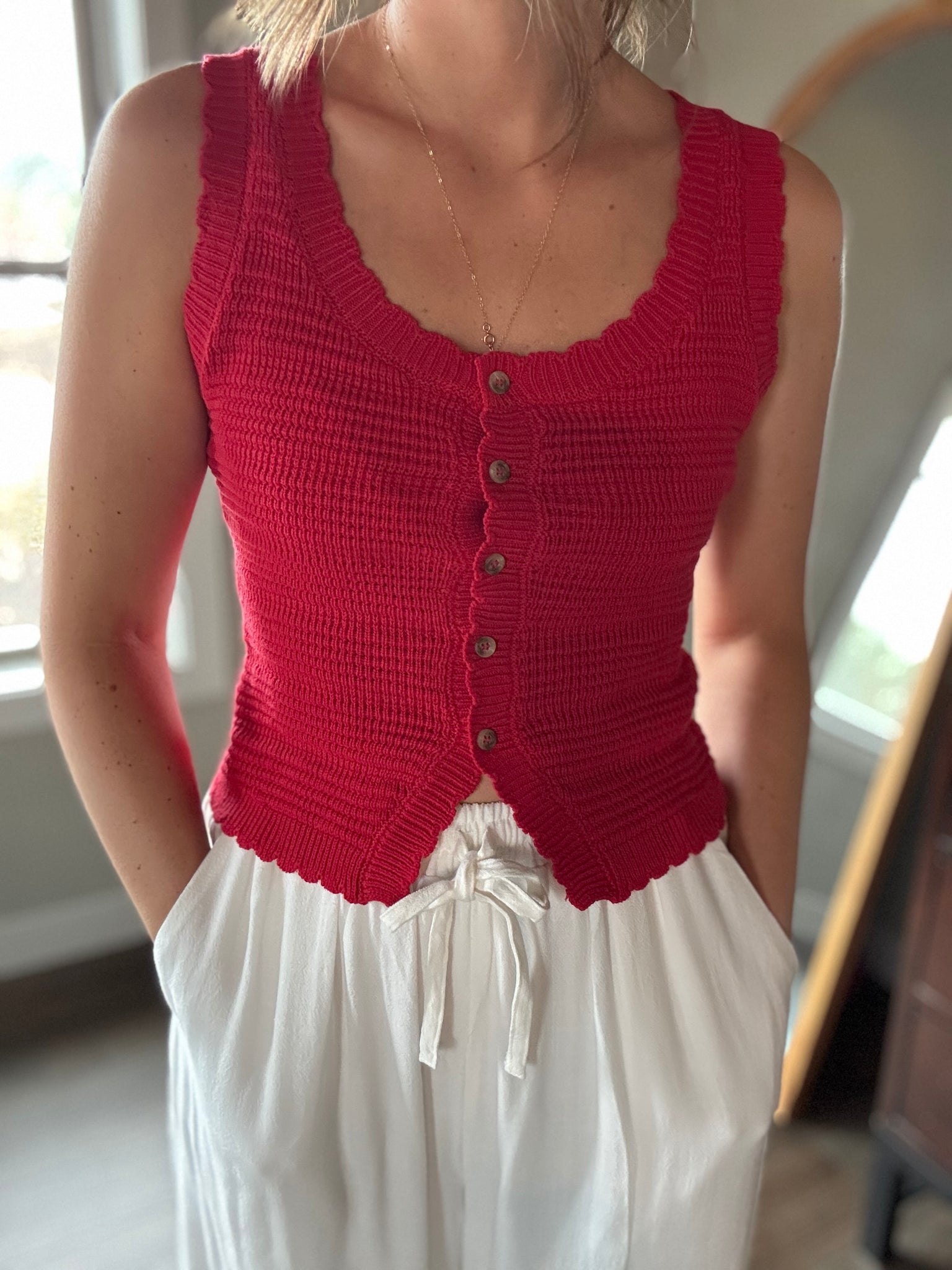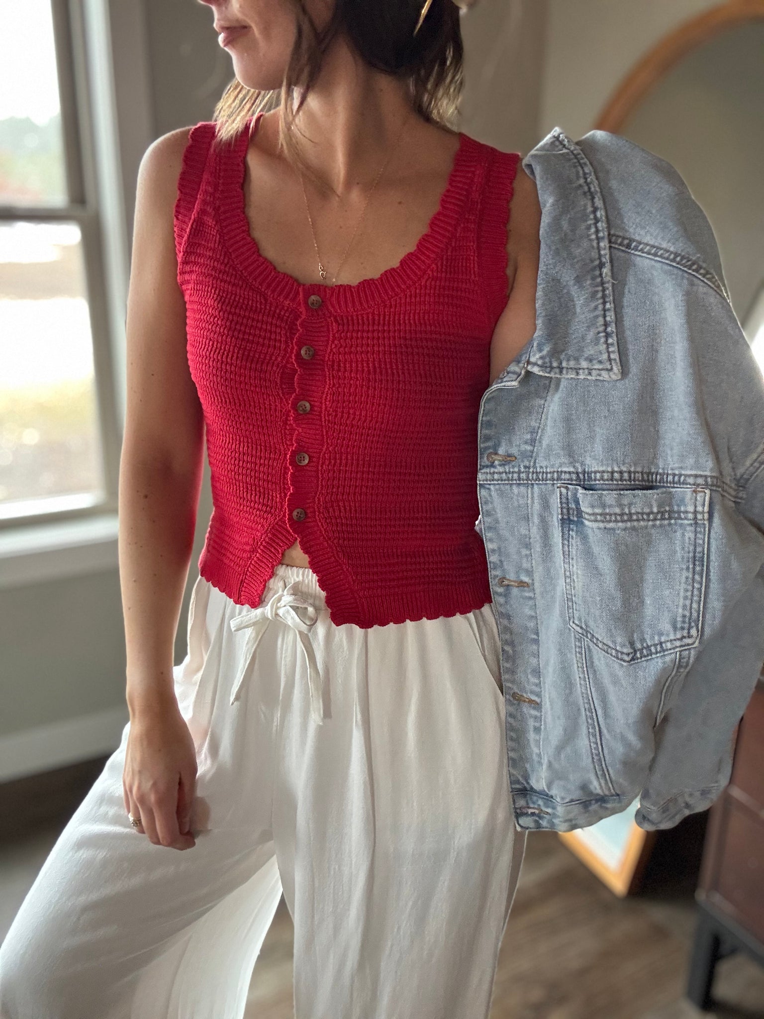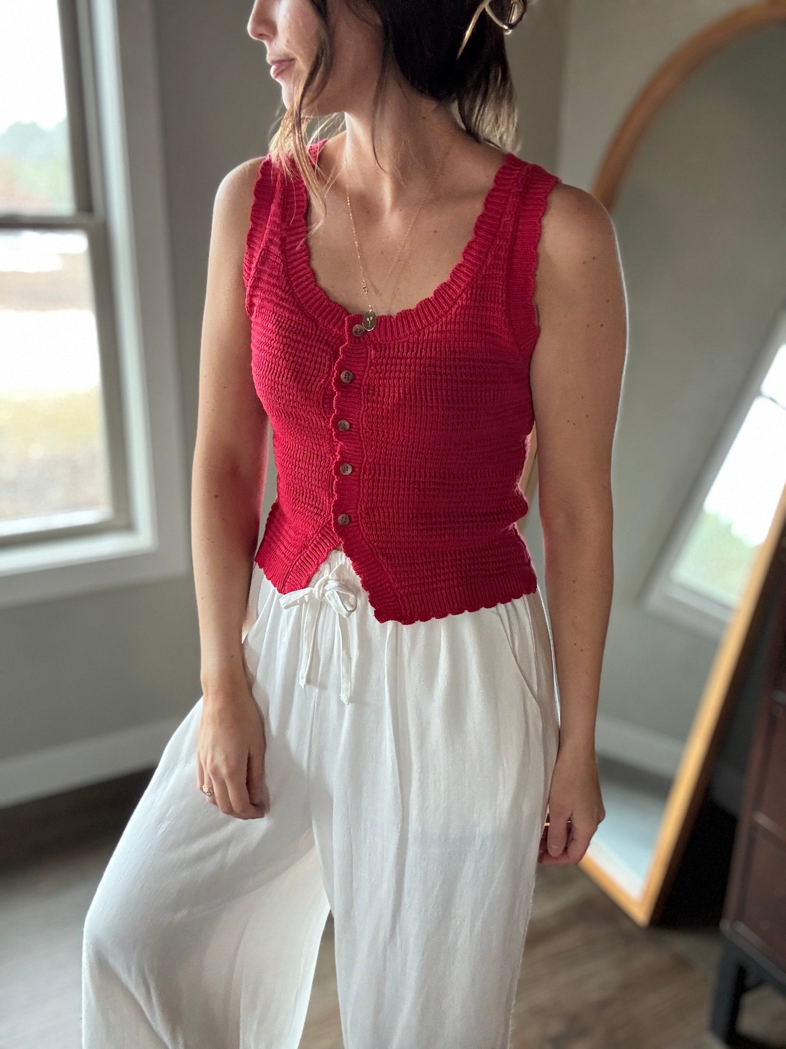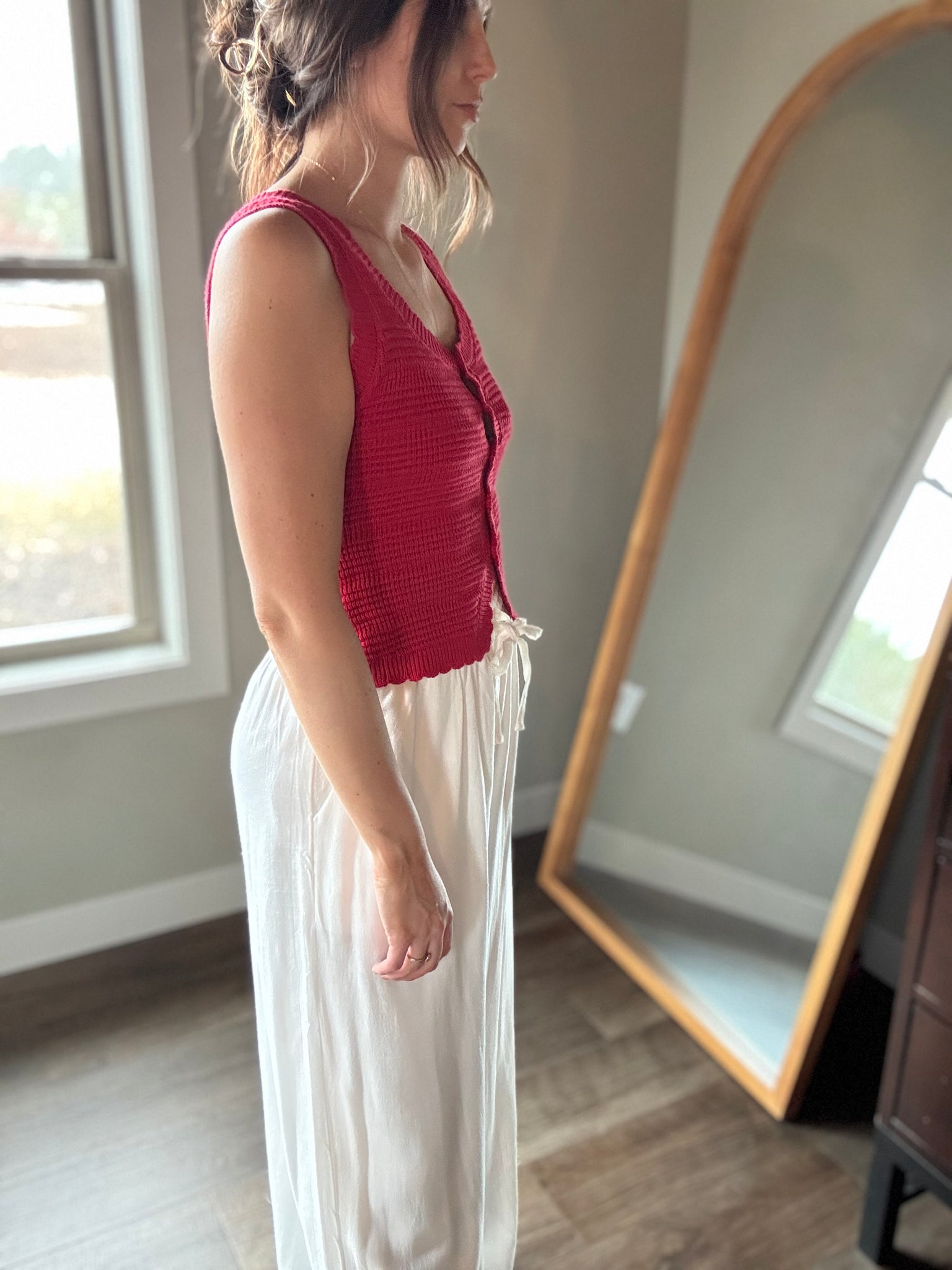 - Kate is 5’5 and wearing a small - recommend sizing up if between sizes, if you're bustier or broader shouldered