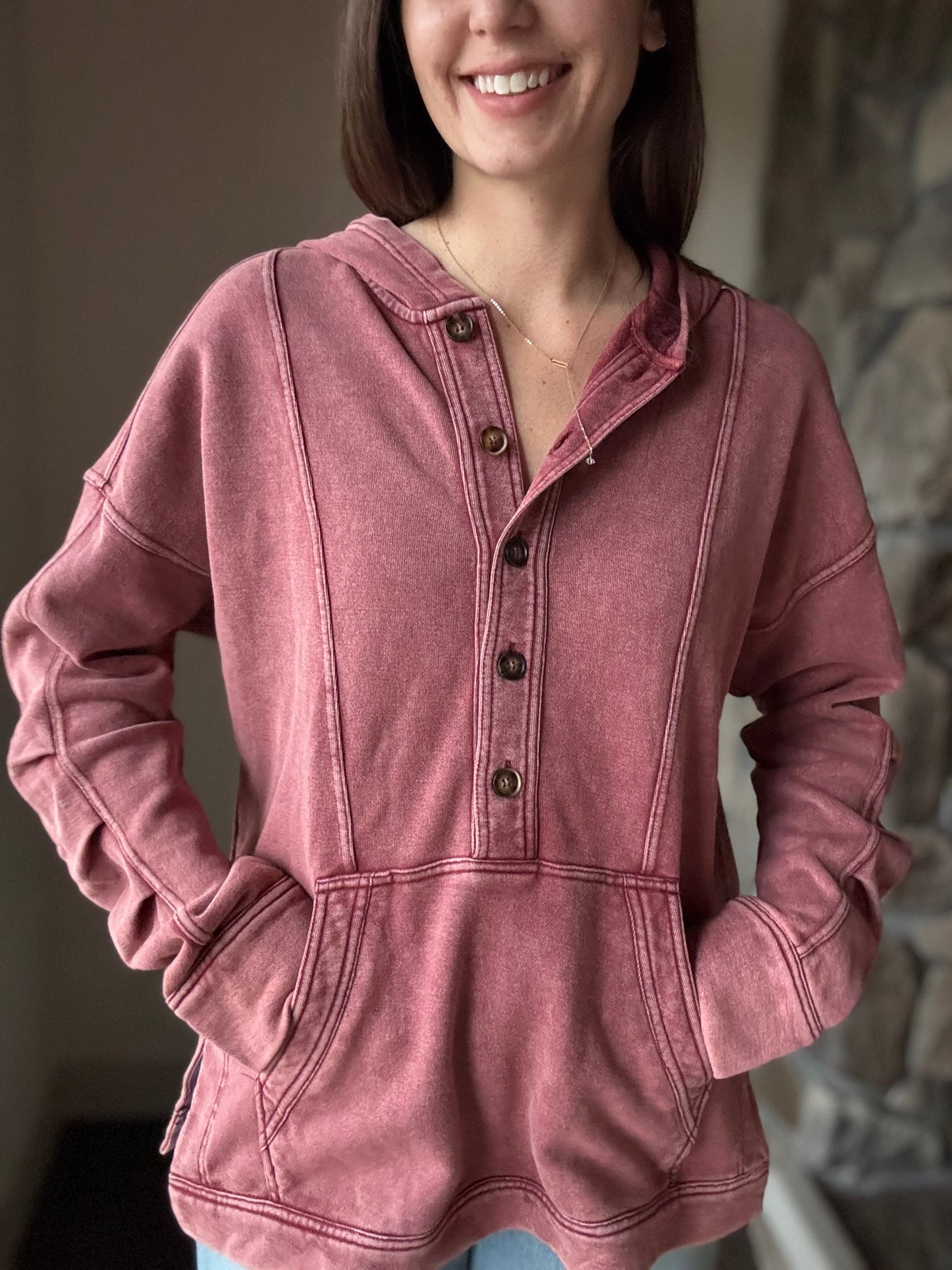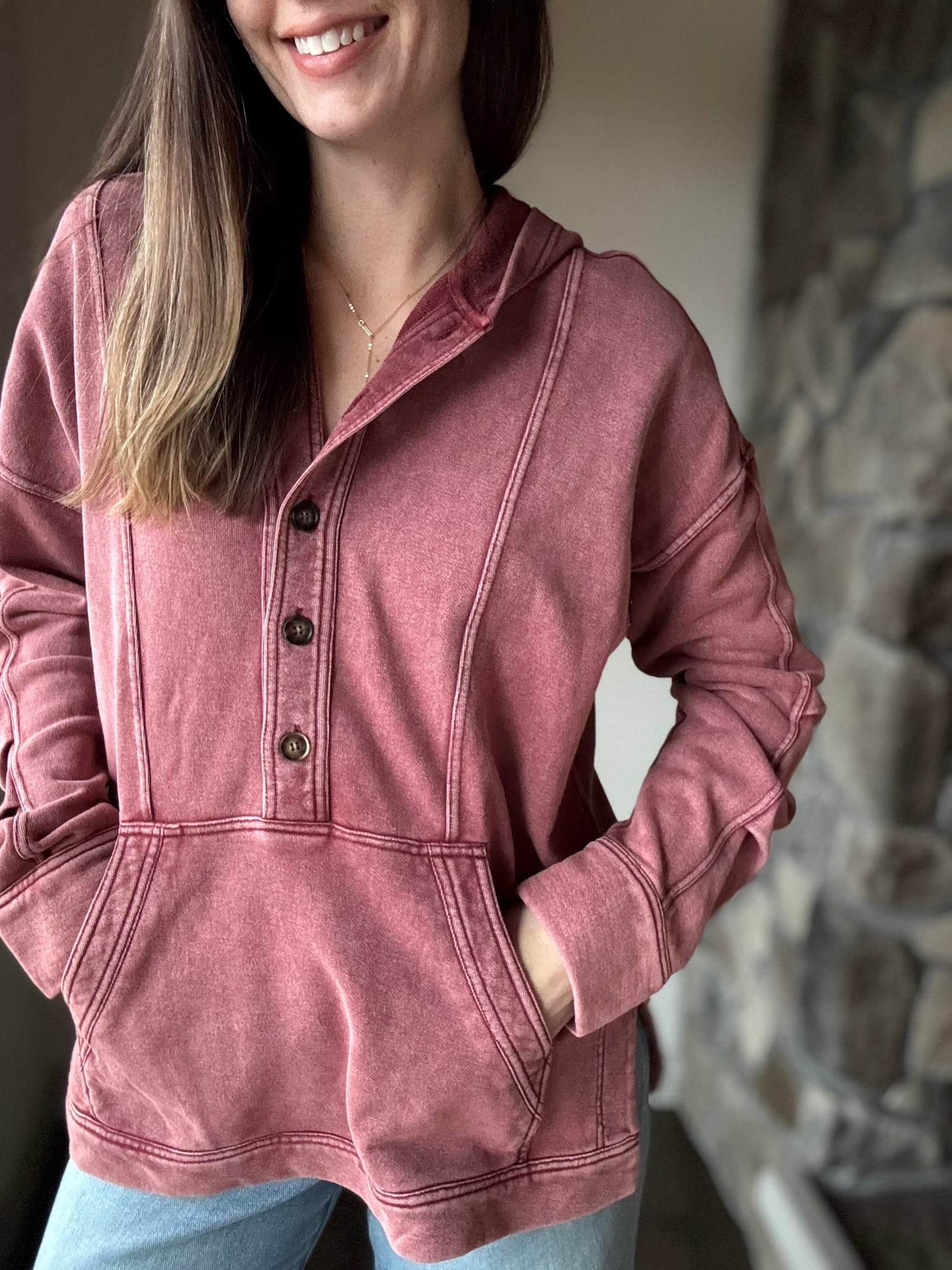 - half button front