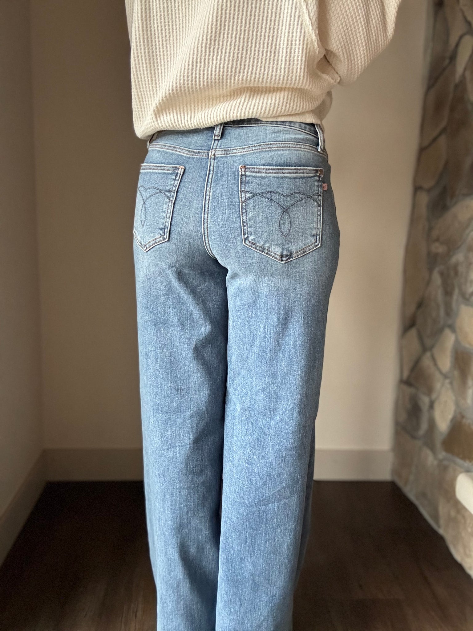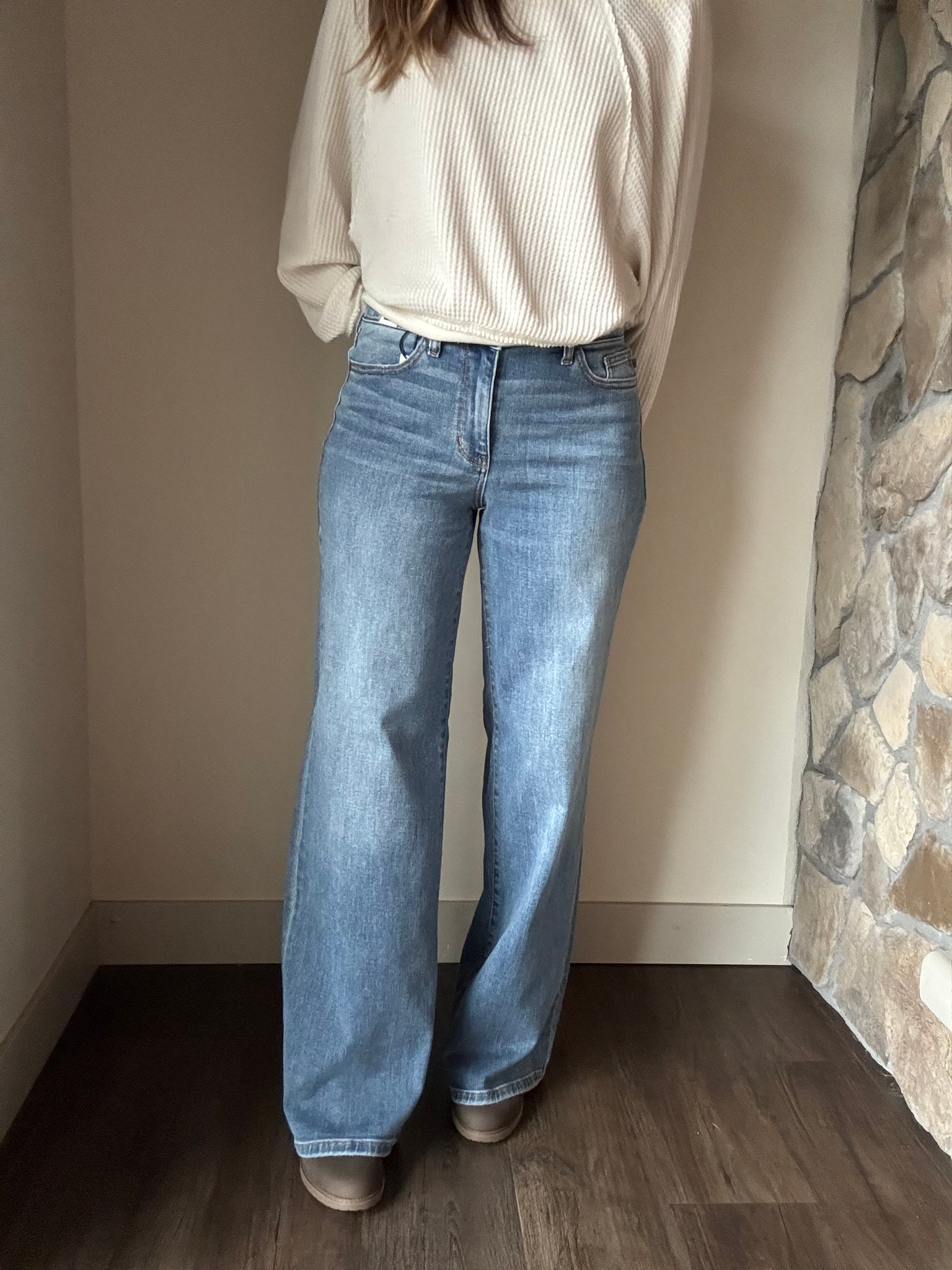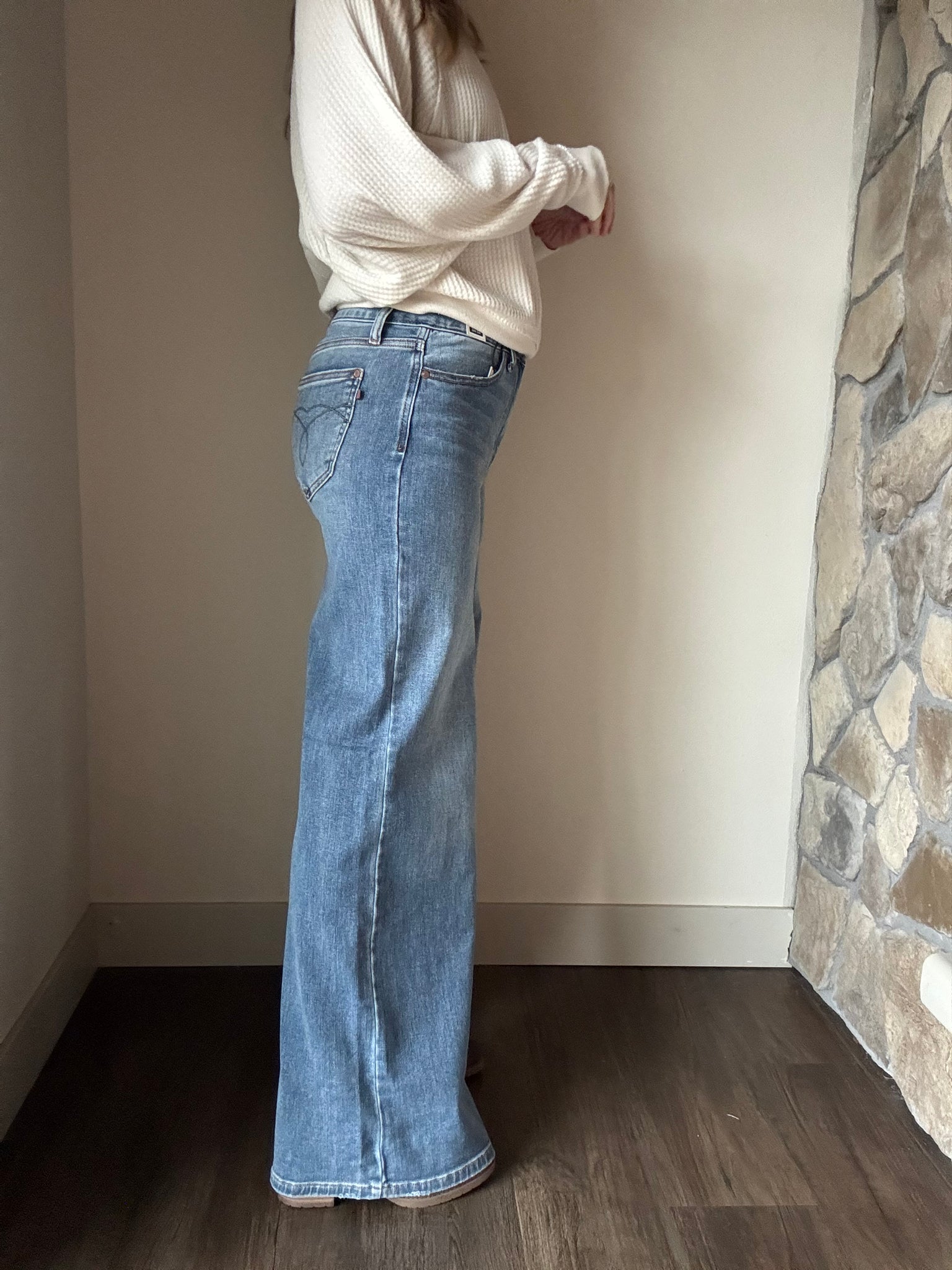 Kate is 5'5 wearing a size 5 (usually a 7 in most brands, 5 in Judy Blue)